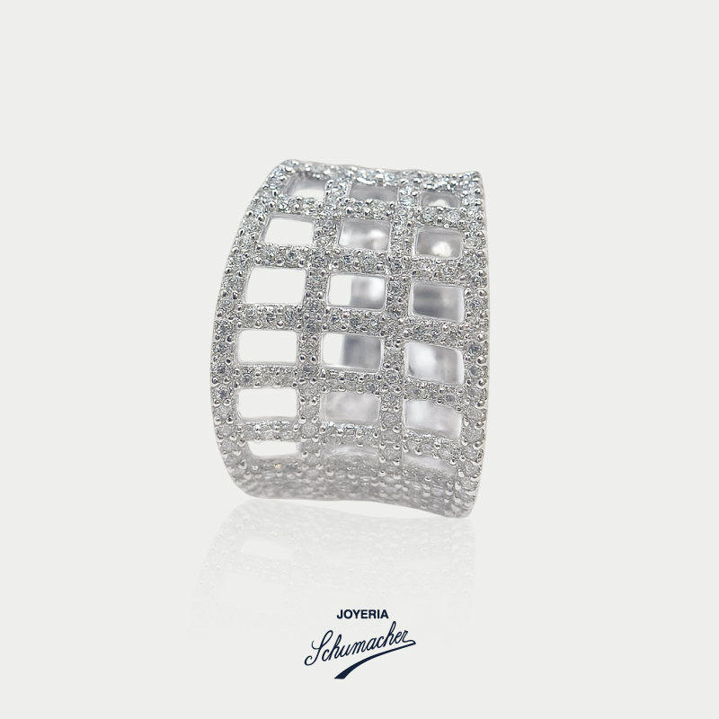 Anillo en oro blanco con brillantes, diseño Lattice | Joyería Schumacher