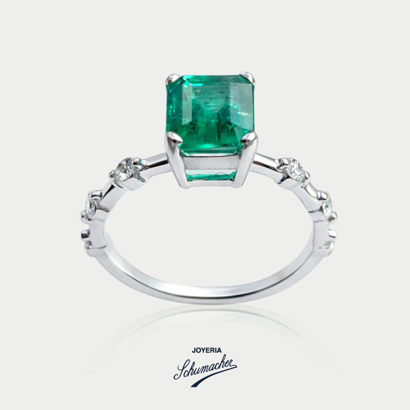 Su color vibrante resalta especialmente cuando se engasta en oro blanco, amarillo o platino, aportando sofisticación a cualquier diseño.