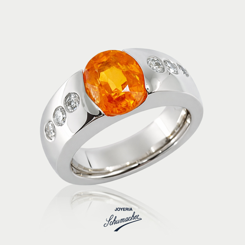 Además de su belleza, el zafiro anaranjado destaca por su alta dureza y durabilidad. Como miembro de la familia del corindón, es una de las piedras preciosas más resistentes, lo que la convierte en una excelente opción para joyas de uso diario, como anillos, pendientes y pulseras. Su resistencia garantiza una joya que conserva su brillo y elegancia con el paso del tiempo.