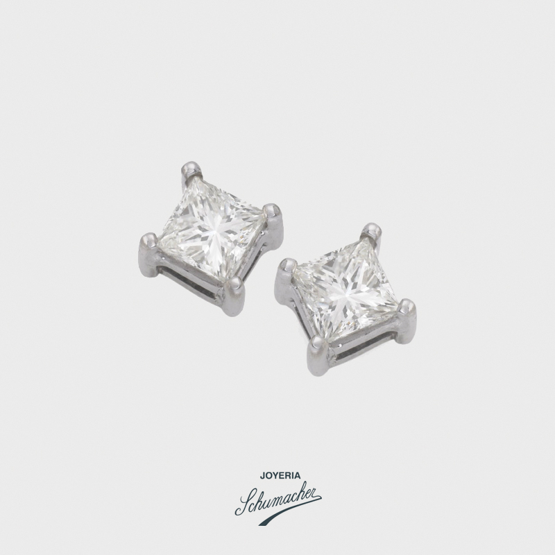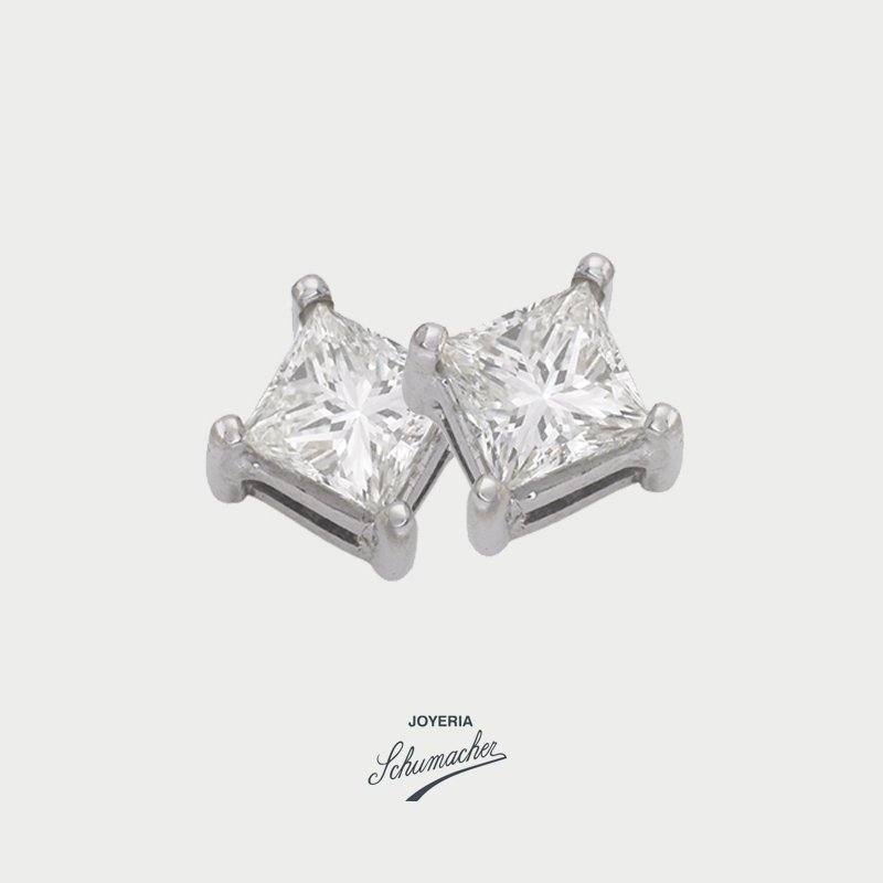 Aretes cuadrados en oro blanco y diamantes | Joyería Schumacher