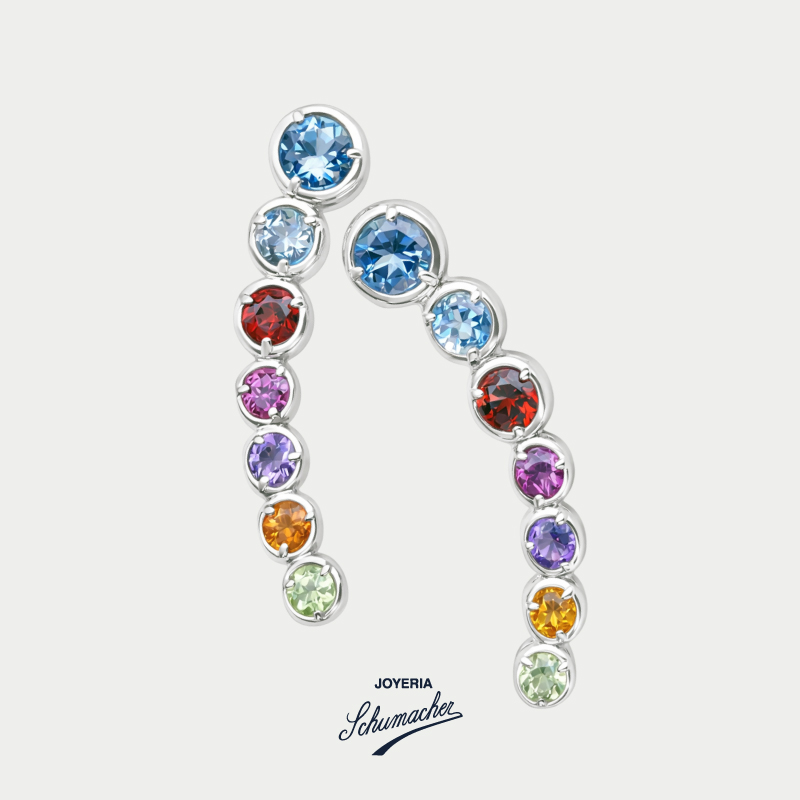 Aretes en oro amarillo con Topacio, Aguamarina, Granate, Turmalina, Amatista, Citrina, Peridoto | Joyería Schumacher