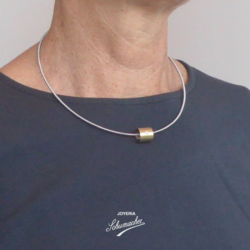 InicioCollares Dije cilindro en oro amarillo y acero con brillantes | Carl Dau