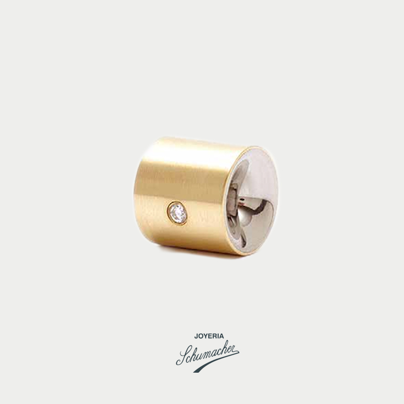 Dije cilindro en oro amarillo y acero con brillantes | Carl Dau