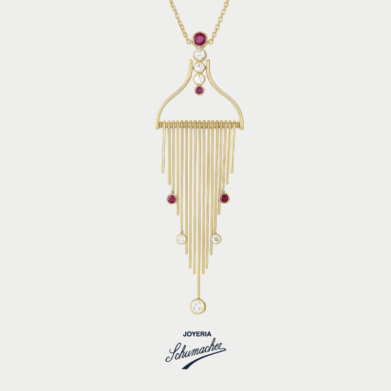 Collar en oro amarillo con rubíes y brillantes, diseño Clío | Joyería Schumacher