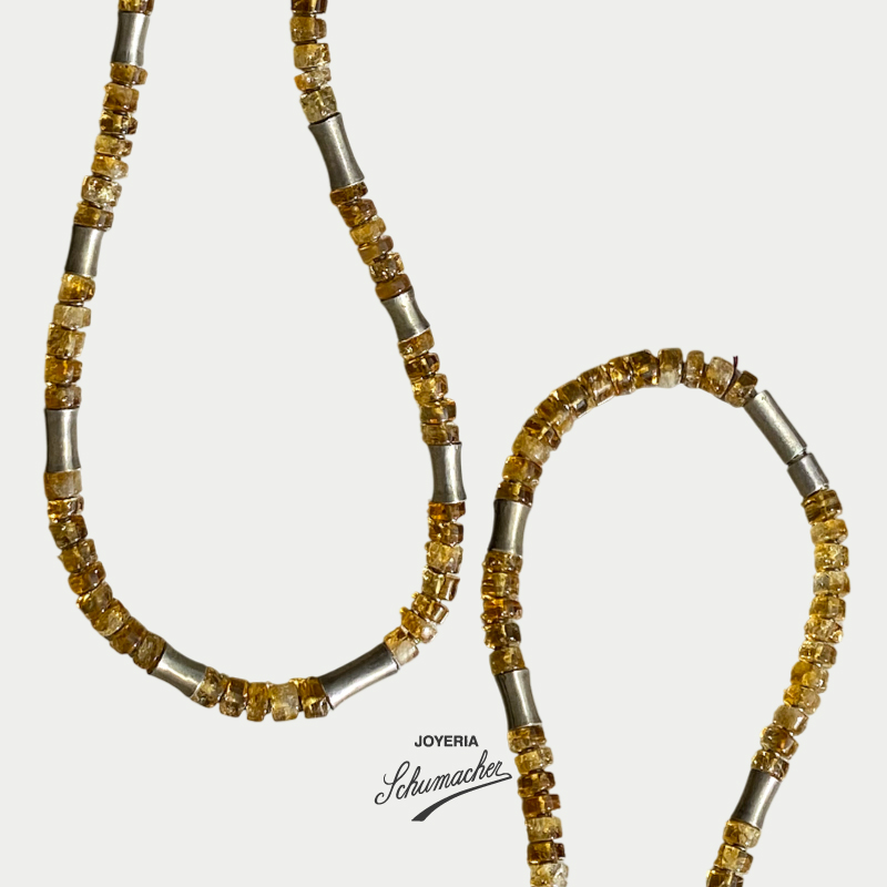 La citrina se utiliza en una amplia variedad de joyas, como anillos, colgantes, pendientes y pulseras. Su color y brillo la convierten en una opción popular para diseños elegantes y sofisticados. Además de su valor estético, la citrina también se asocia con propiedades curativas y espirituales en algunas culturas. Se cree que la citrina atrae la abundancia, la prosperidad y la felicidad.