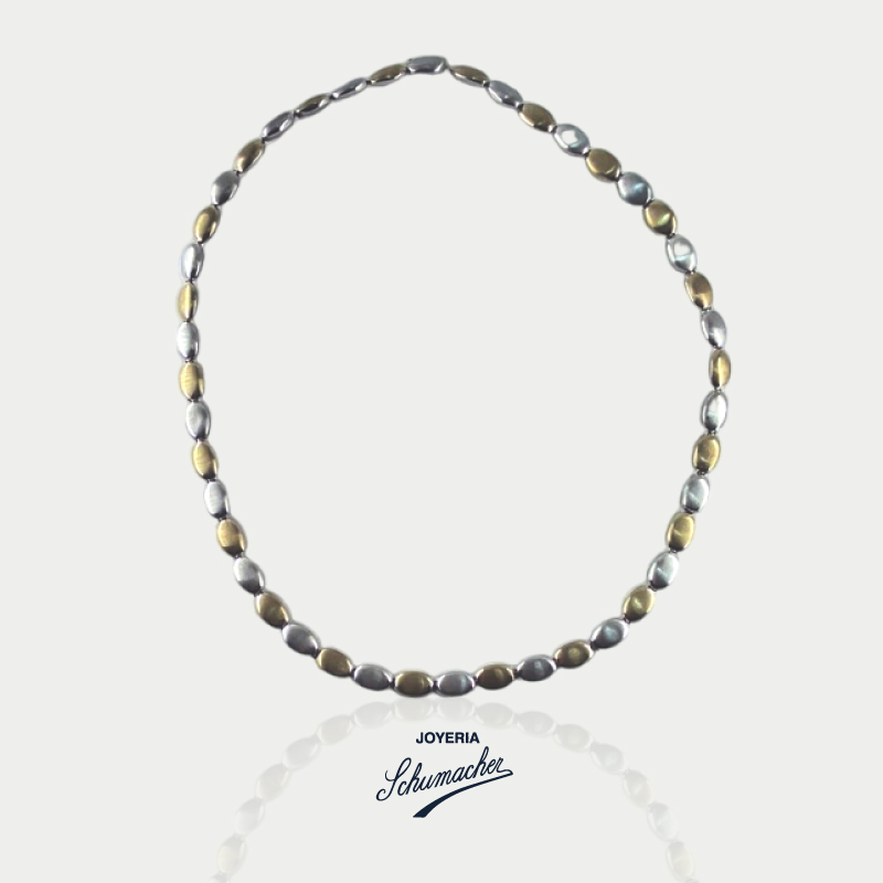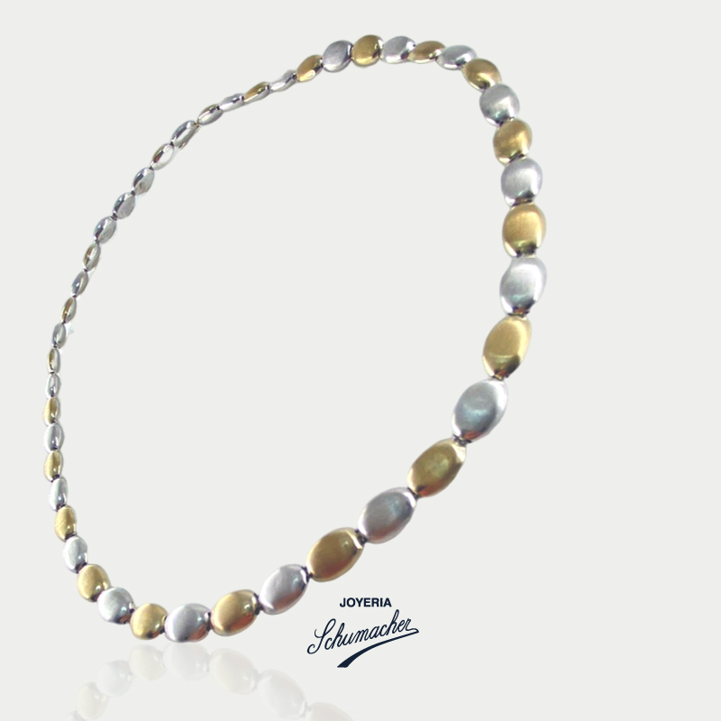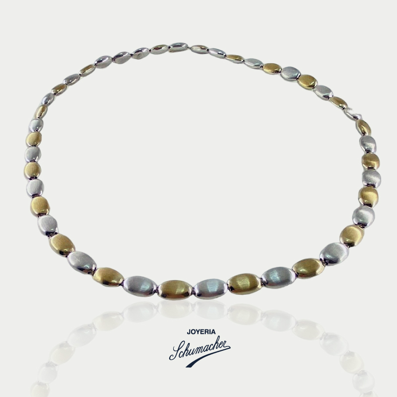 Collar reversible en plata y oro mate por un lado, y solo plata brillante por el otro. Se puede usar de ambos lados | Joyería Schumacher